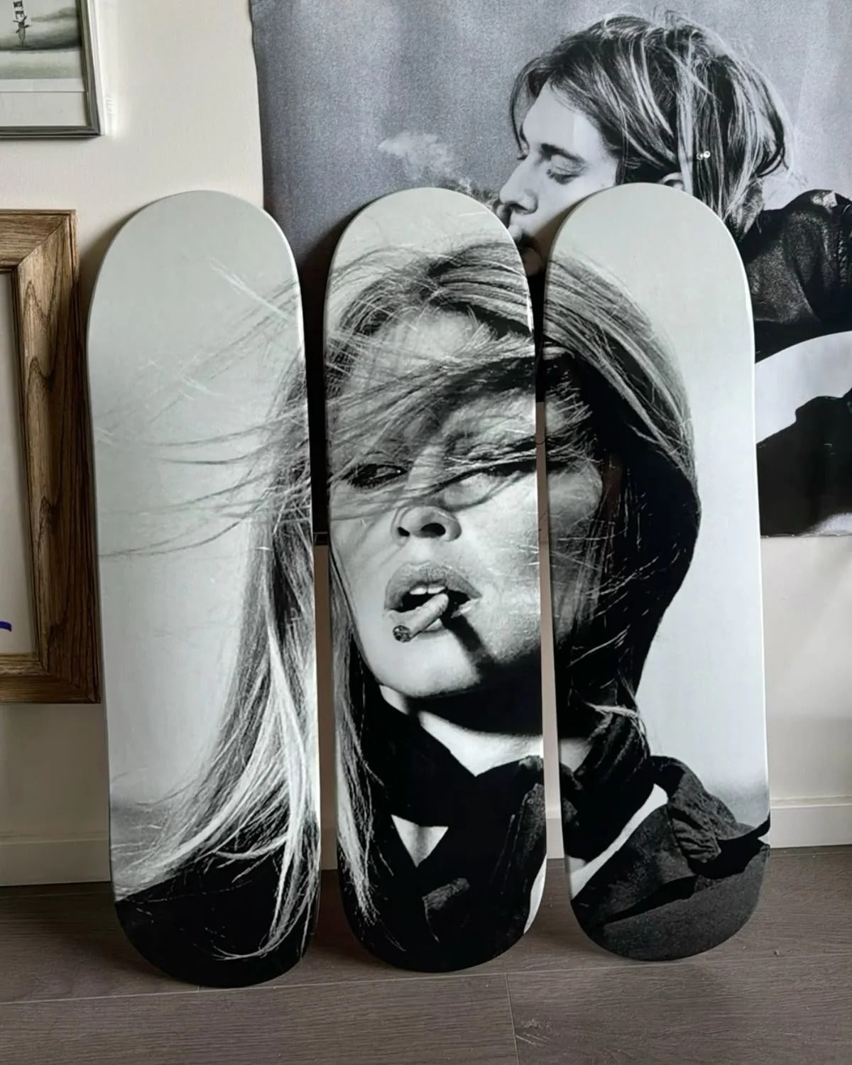 Each set is made to order and handcrafted using wood skateboard decks. While these decks are built from durable, high-quality materials, they are intended for decorative display only — trucks and wheels are not included, and they are not designed for actual skating.