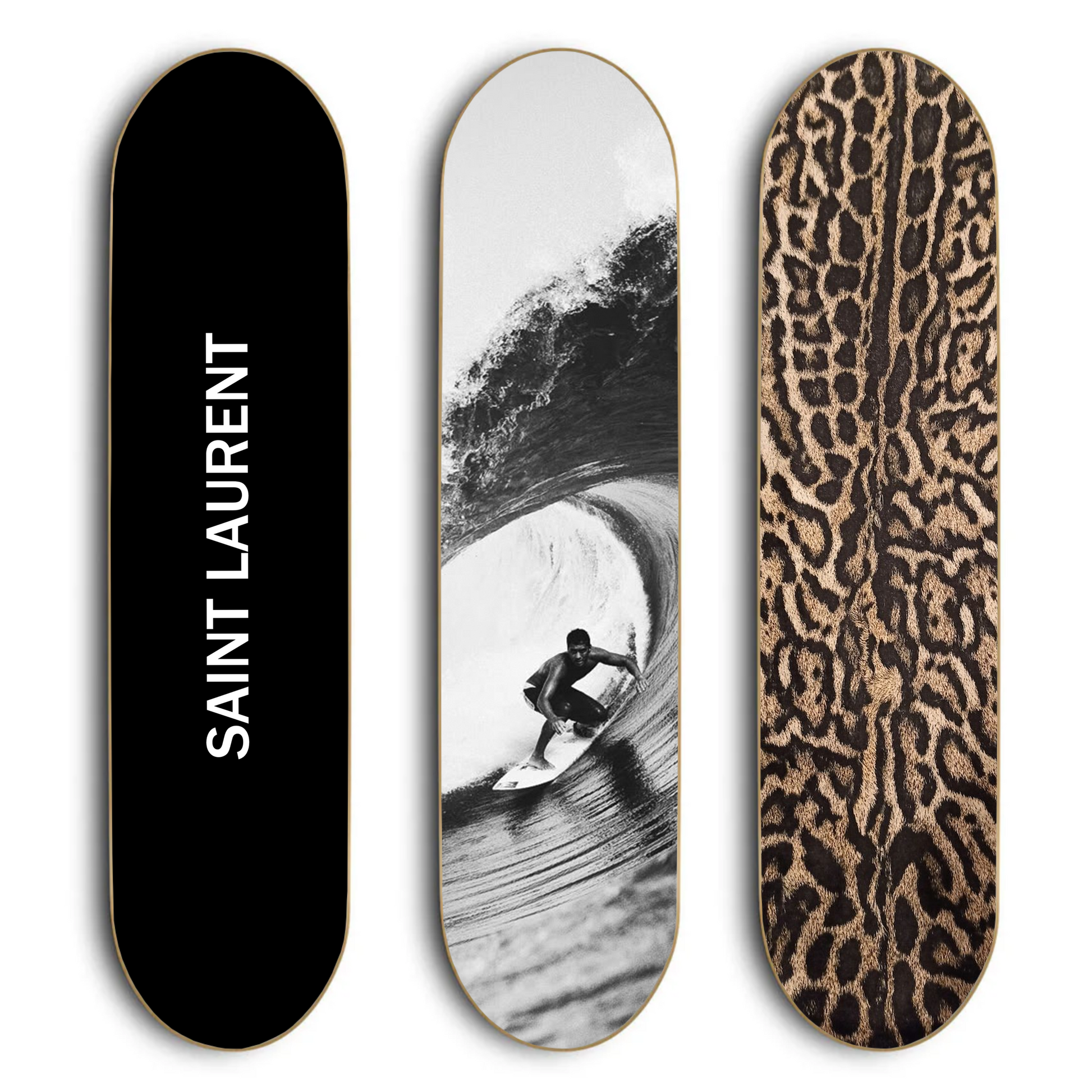 Each set is made to order and handcrafted using wood skateboard decks. While these decks are built from durable, high-quality materials, they are intended for decorative display only — trucks and wheels are not included, and they are not designed for actual skating.